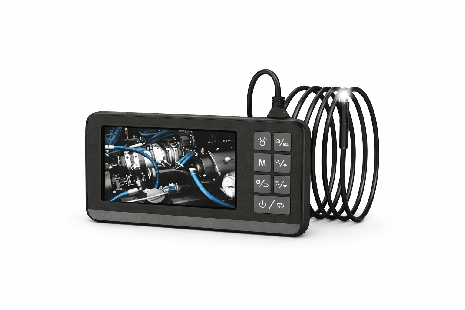 Rezolucija slike do 1920x1080 obezbeđuje jasan i detaljan prikaz, dok polu-tvrdi kabal dužine 5 metara omogućava precizno upravljanje i lak pristup teško dostupnim mestima kao što su cevi, odvodi, motori i instalacije.