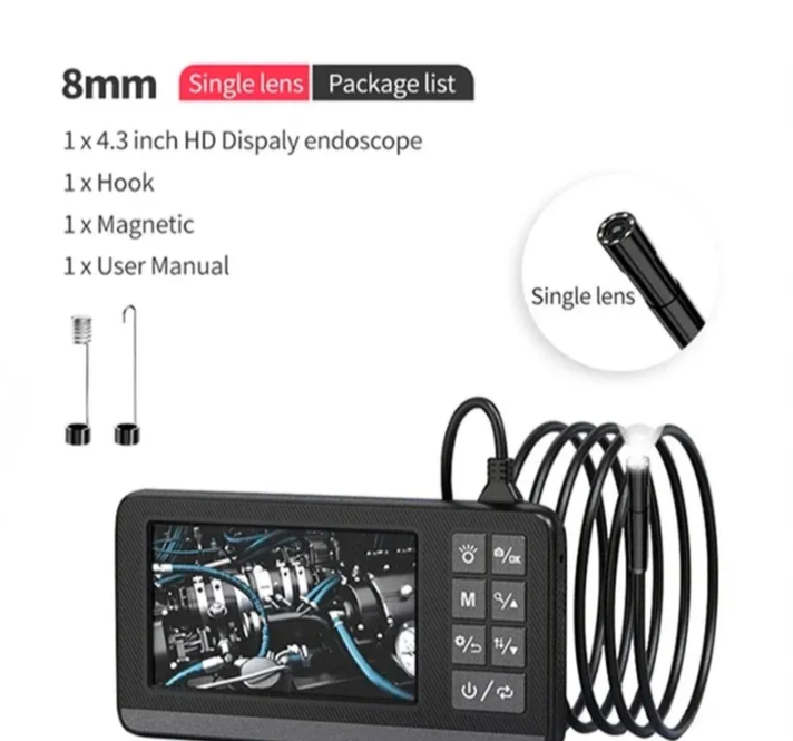 Ova endoskopska kamera sa 4.3" IPS monitorom dolazi u kompletu sa kamerom i ekranom, što znači da nije potrebna aplikacija, WiFi, Bluetooth niti pametni telefon. Uređaj je potpuno samostalan i spreman za rad odmah nakon uključivanja.