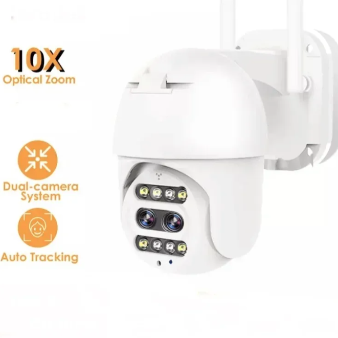 Rotirajuća PTZ WiFi kamera A20 28MP predstavlja snažno i pouzdano rešenje za napredni video nadzor. Opremljena je sa dva objektiva (3.6 mm + 12 mm), omogućavajući precizan prikaz kako širokog prostora, tako i udaljenih detalja zahvaljujući 10x optičkom zoomu.