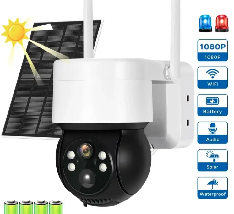 Kamera poseduje PTZ rotaciju do 345°, PIR senzor pokreta, dvosmerni audio i LED svetla za noćno snimanje u boji. Zahvaljujući solarnom panelu i ugrađenim baterijama, kamera može raditi potpuno autonomno bez stalnog napajanja.