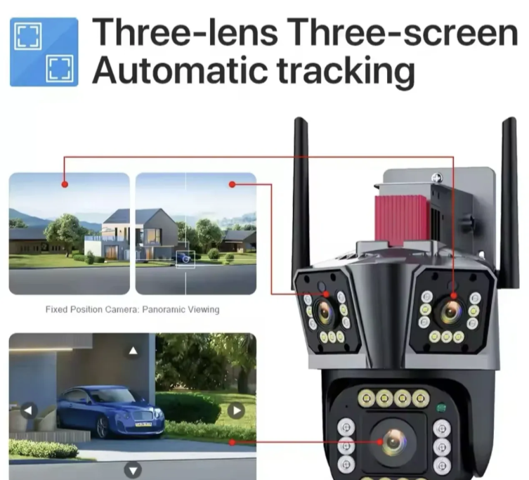 Kamera sa tri nezavisne kamere omogućava potpunu kontrolu prostora uz minimalnu instalaciju, pružajući maksimalnu sigurnost i fleksibilnost.